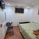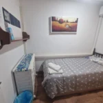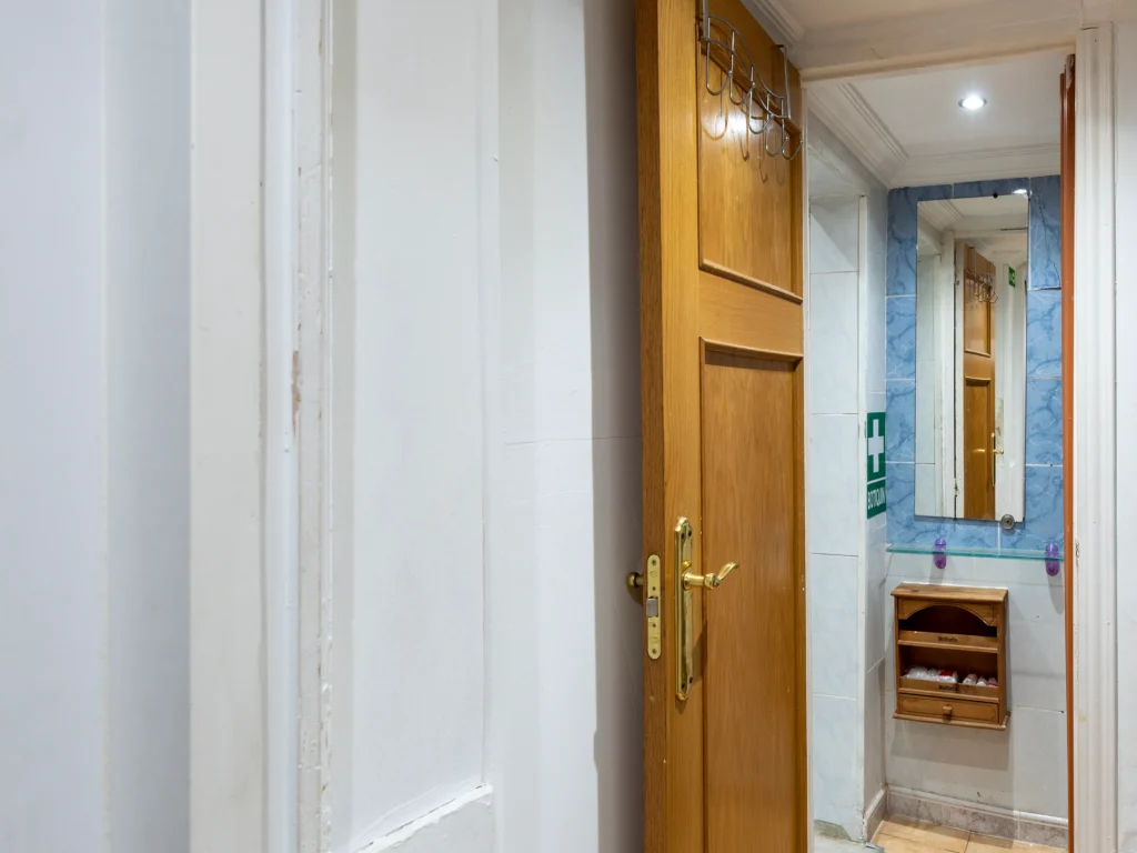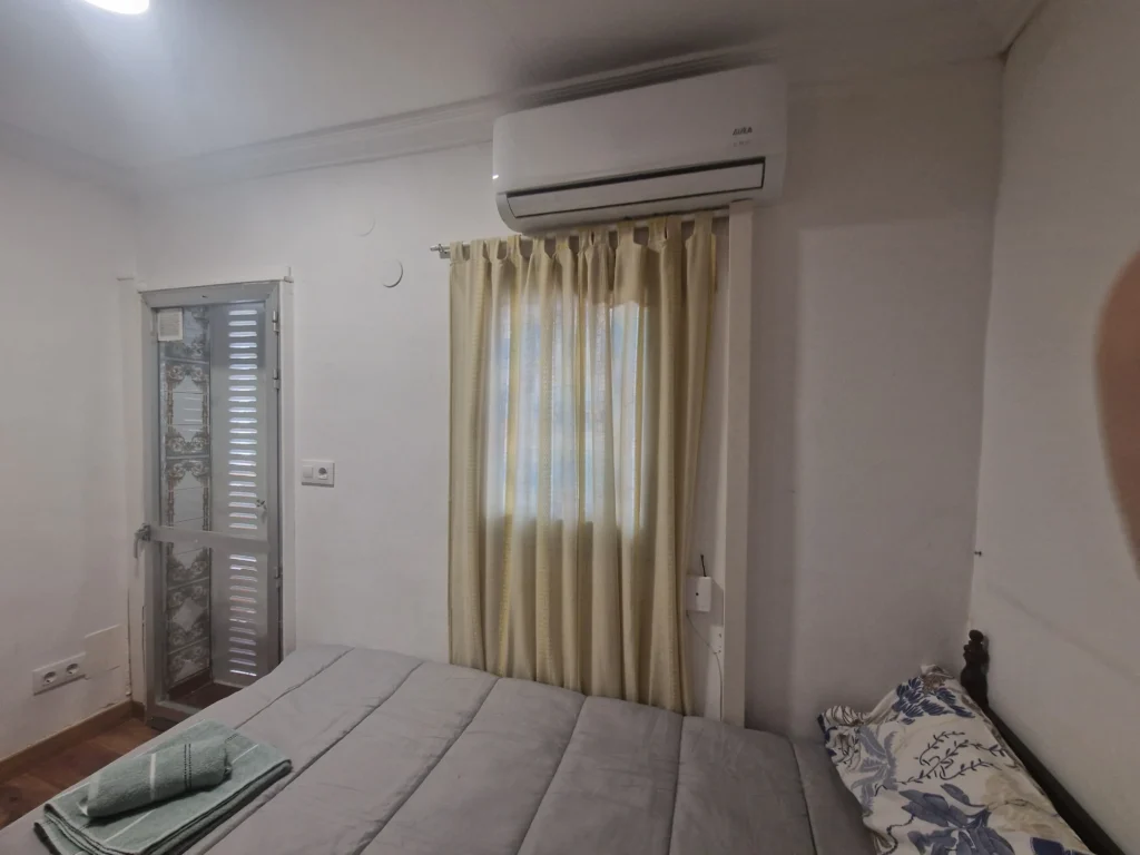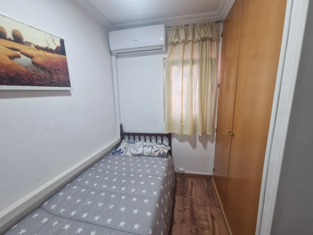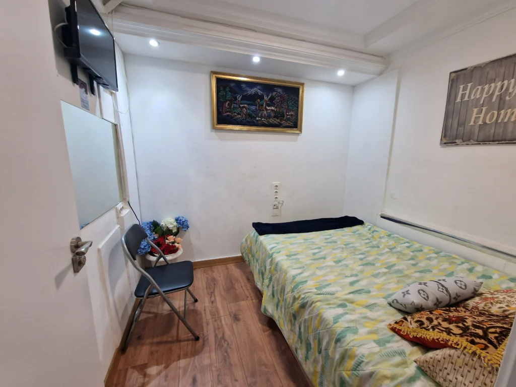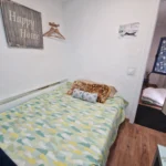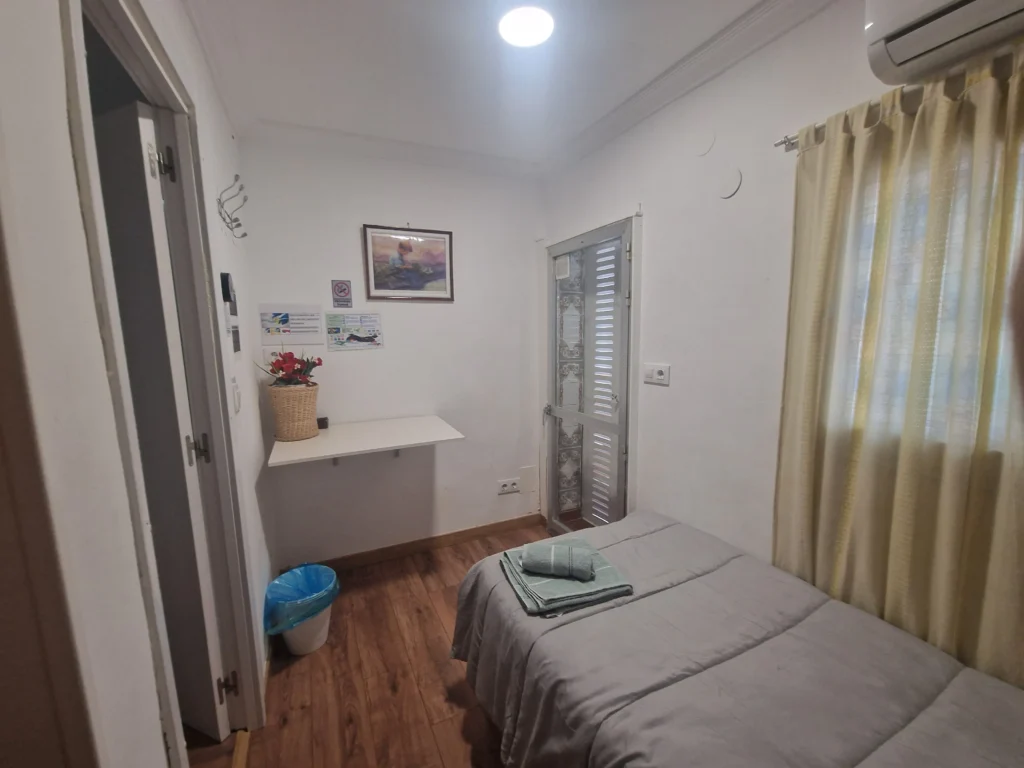 Dispondrás de un armario de madera para organizar tus pertenencias, así como una mesita de noche con lámpara, ideal para leer antes de dormir. Suelos de madera y una decoración sencilla crean un ambiente cálido y tranquilo. Es la opción perfecta si buscas un espacio privado, práctico y a un precio excelente.