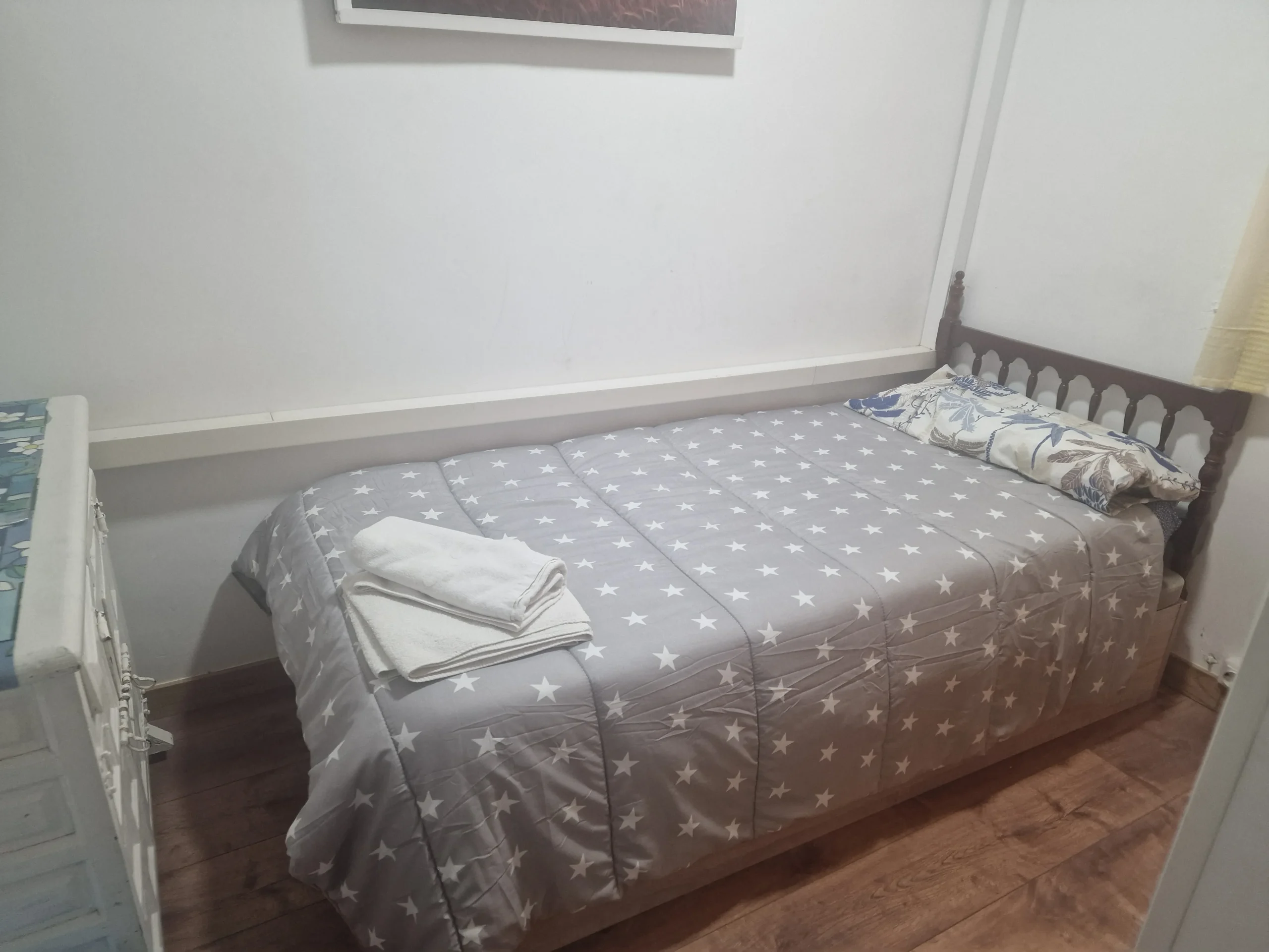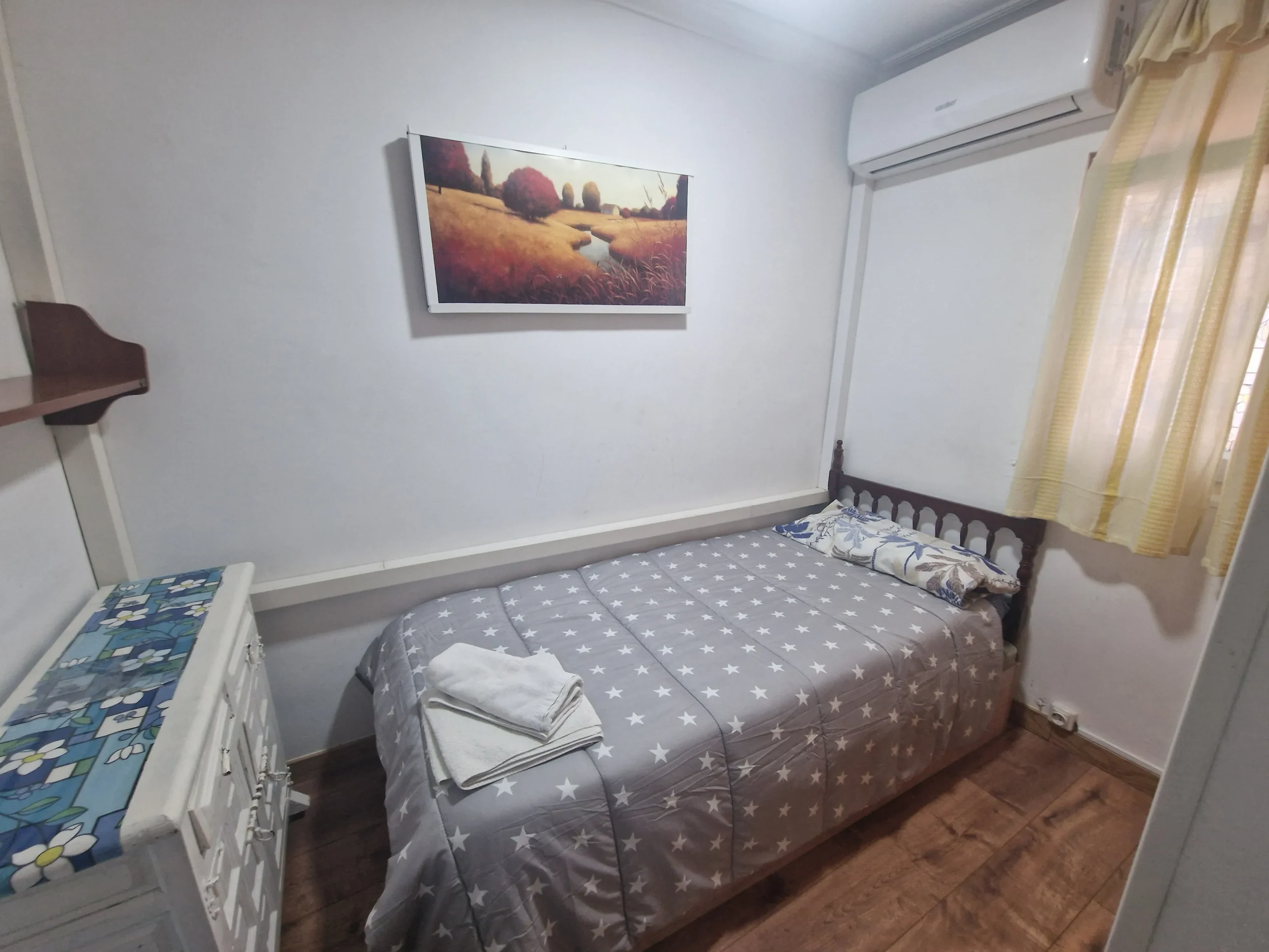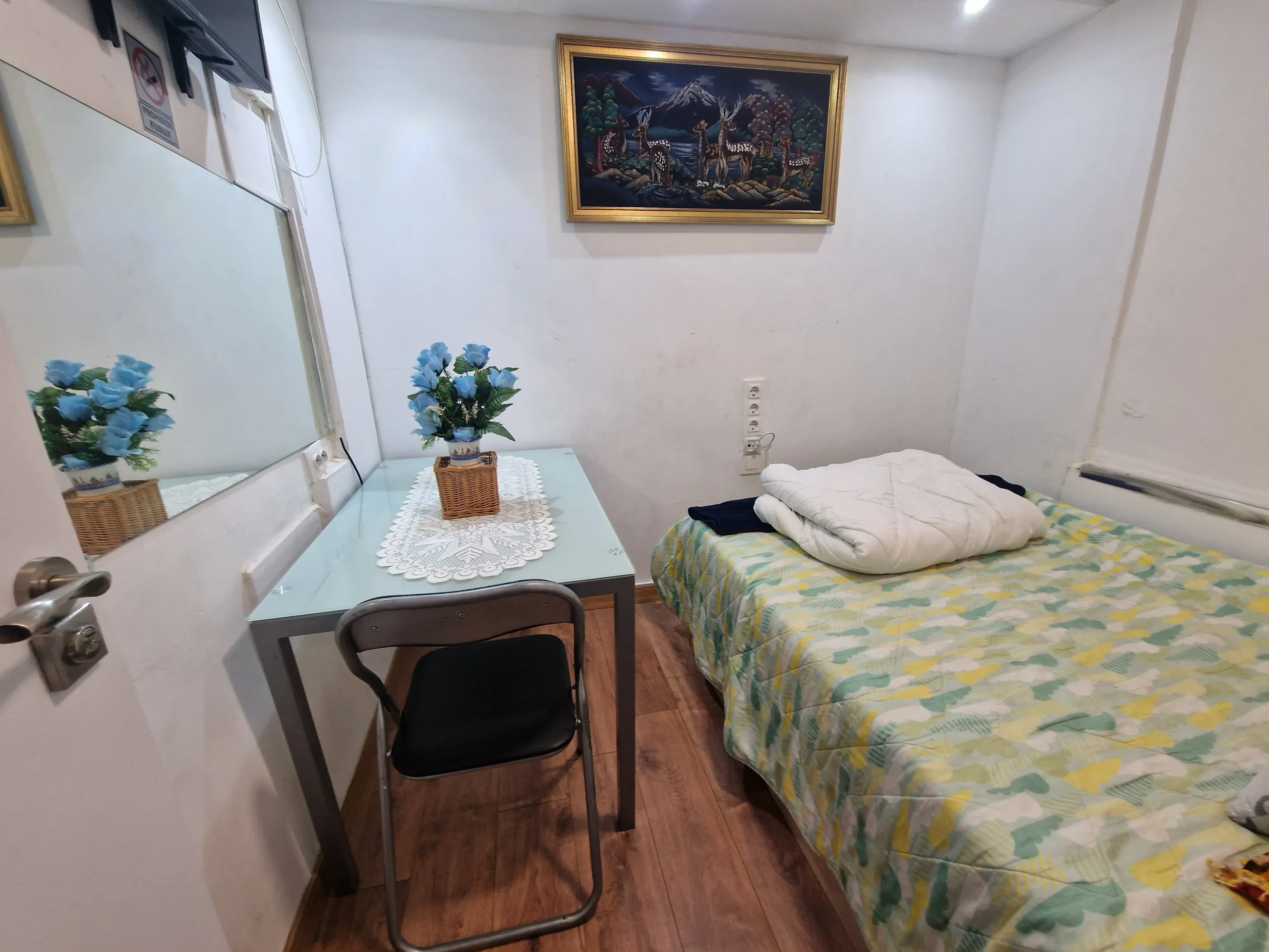 Dispondrás de un armario de madera para organizar tus pertenencias, así como una mesita de noche con lámpara, ideal para leer antes de dormir. Suelos de madera y una decoración sencilla crean un ambiente cálido y tranquilo. Es la opción perfecta si buscas un espacio privado, práctico y a un precio excelente.