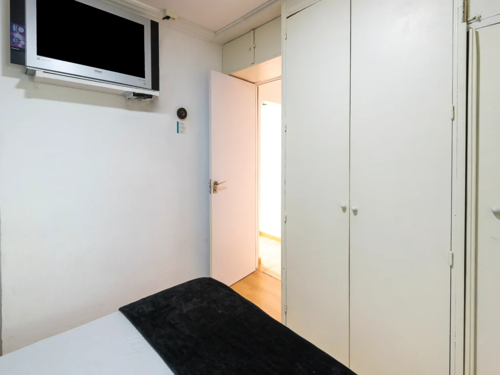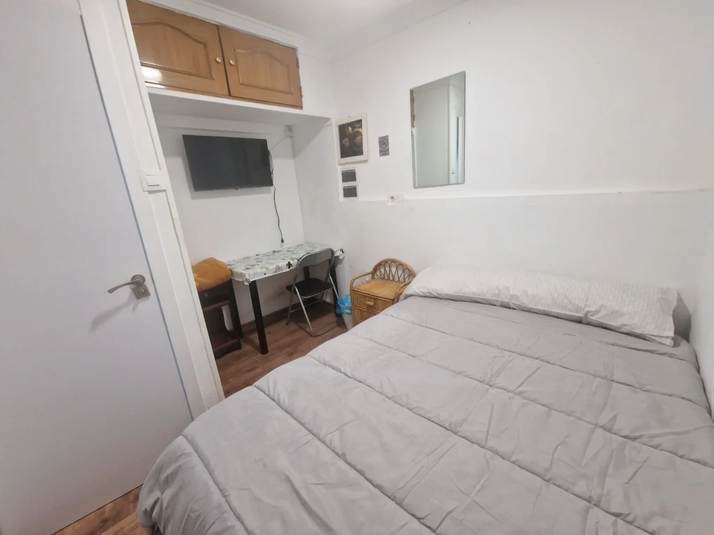 Para tus momentos de ocio, dispones de una TV de pantalla plana montada en la pared, perfecta para ver tus series o películas favoritas. Un espacio práctico y bien equipado para asegurar una estancia sin complicaciones.